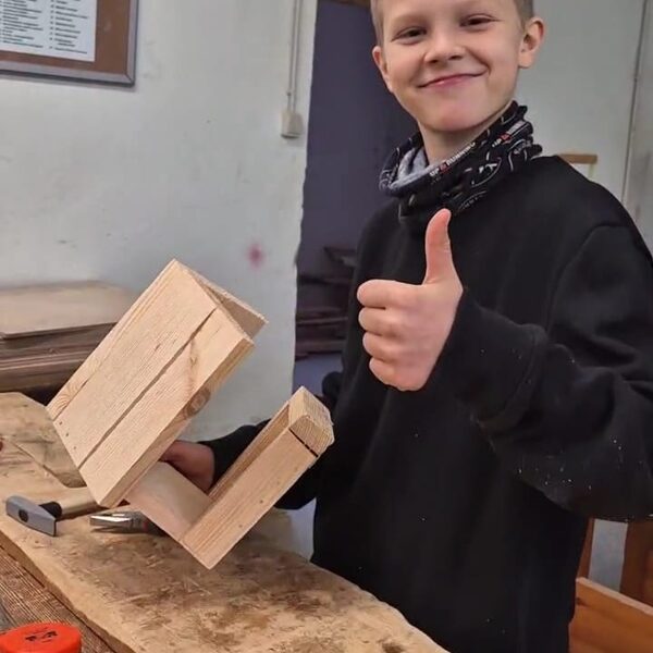 Radošas un izglītojošas aktivitātes bērniem un jauniešiem, organizējot praktiskas nodarbības bērnu nometnēs, skolās un vietējās kopienās, attīstot prasmes kokapstrādē un dizainā. Dalībnieki izgatavo koka rotaļlietas, putnu būrīšus, interjera priekšmetus un citus dizaina objektus, veicinot radošumu un praktisku domāšanu.
